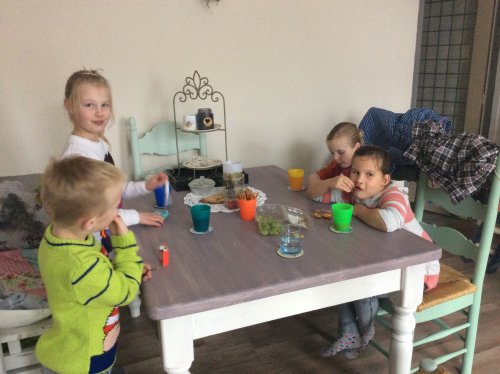 De beeskesmorgen voor kids was een succes. Met 4 hele leuke lieve kids de dieren gevoerd en verzorgd, eitjes gezocht en deze mochten ze zelf mee naar huis, dierenparcours, wormen zoeken en de kippen uit de hand voeren, katten/kippen en konijnen aaien en knuffelen. Leerzaam en erg gezellig. Ik zeg voor herhaling vatbaar. Helaas erg slecht weer, waardoor we buiten weinig met de paarden hebben gedaan. Maar dat mocht de pret niet drukken. Hebben ons prima vermaakt. Ook iets lekkers met wat te drinken viel goed in de smaak. En de oliën waaraan ze mochten ruiken en een druppeltje op hun polsen mochten doen. Wat roken ze lekker...